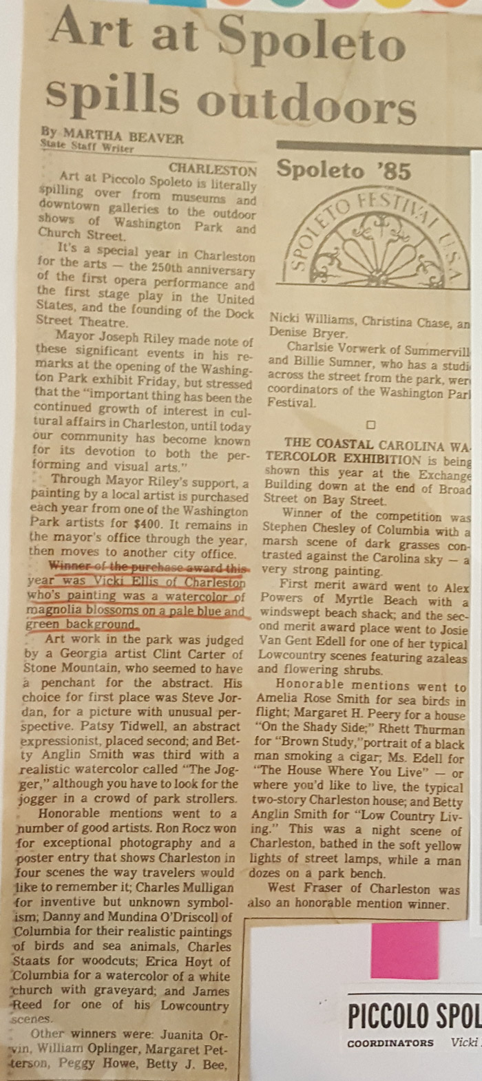 It's hard to believe Piccolo Spoleto Outdoor Art Exhibit has reached maturity. We're 40 years old! Unbelievably, many of the artists have been with this show since it's beginning! The program runs 17 days, outside in the elements, come what may!  Come out to Charleston, SC's Marion Square! The show runs from May 24th to June 9th. Hope to see you there!